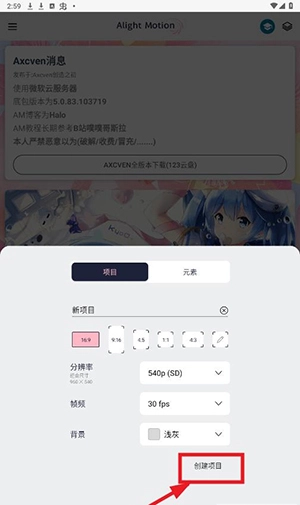 选择新项目的参数,点击创建项目