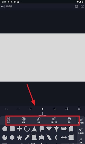 选择形状,媒体或者音频,对象,元素,模版导入