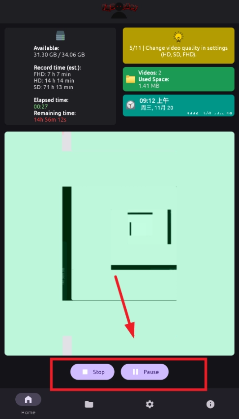 点击stop停止录制,点击pause暂停录制