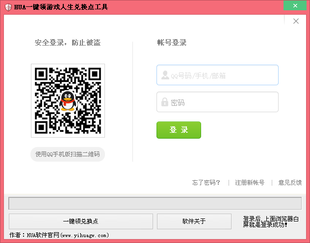 【概括介绍】HUA一键领游戏人生兑换点软件是一款用于游戏人生兑换点辅助工具。软件页面简洁,方便好用,只需登录QQ就可以一键领取,可以根据游戏人生的商品兑换规则兑换相应的东西。赶快下载收藏吧。