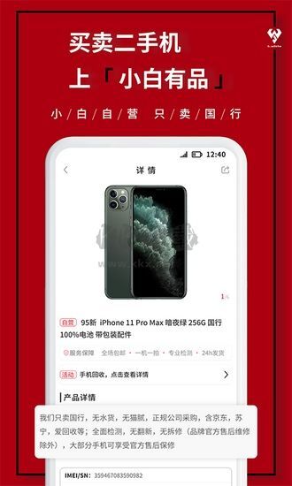 闪小白APP是一款专注于二手手机交易的软件,用户可以在该平台上找到有质量保证的二手手机。此外,用户还可以在闪小白APP上购买到高品质的电商运营产品,并享受三天无理由退货和180天的质量保证服务。这为用户在购买二手手机时提供了很好的保障。如果你对此感兴趣的话,赶紧来KK下载体验吧~