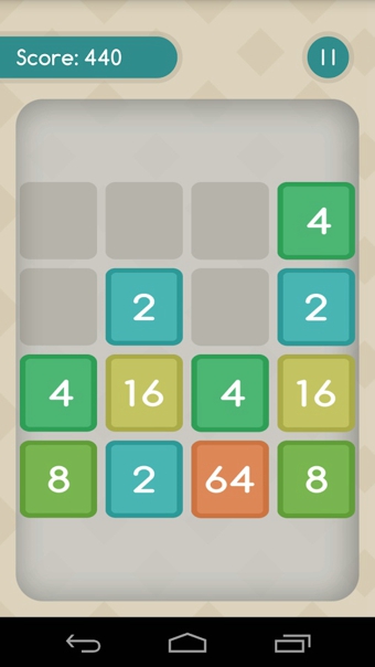 3、被加数移动要少(我通常都是放在最左上角,这样比较保险,如果计算能力特别强,这个到无所谓),用低级根创造高级根,且根要有连续性。举例:被加数到512时,你的图上最好要有256(之前使用低级根加上来的)、128、64、32。这样数字相加后留下的空间就多,就不容易结束游戏。所以这个游戏其实是一个靠「准备」通关的游戏,意思就是你凑出512之前不要急,先把各个根给凑出来。
