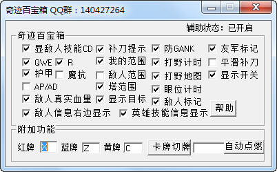 奇迹LOL百宝箱是一款英雄联盟LOL的游戏辅助工具,lol百宝箱下载具有补刀提示、敌人标记、打野等多种功能,帮助玩家在游戏中玩的更加轻松。