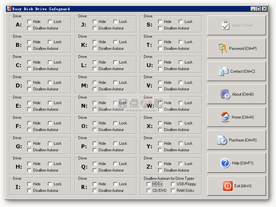 Easy Disk Drive Safeguard V3.4 英文绿色特别版 关闭自动运行的功能并且隐藏和锁定你的本地和网络驱动器