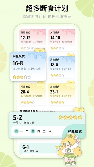 *专业轻断食计划:提供专业的轻断食计划,帮助用户进行有节制的饮食控制,有效减轻体重,改善身体健康。