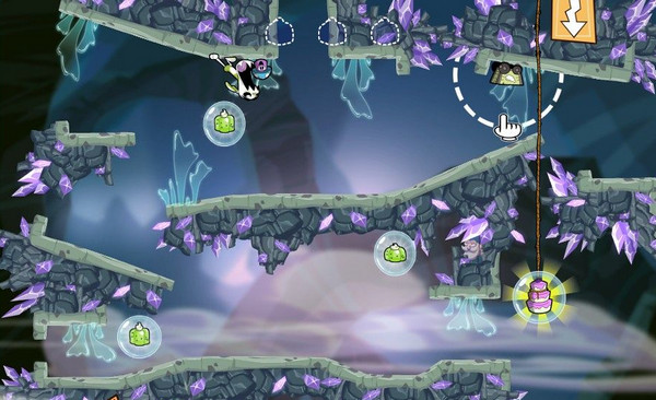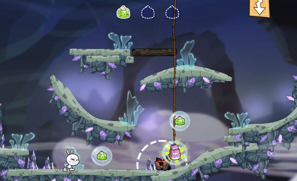 《点心大作战(Eets Munchies)》是一款物理解谜游戏,玩家需要控制一只馋嘴的兔子,穿过屏幕中复杂的关卡,努力吃到屏幕中所有的点心。点心分为两种,一种是每关终点处的蛋糕,另一种则是散落在屏幕中的各种甜食。只有把所有的甜食集齐后,再到终点处吃到点心,你才能以最高的分数过关