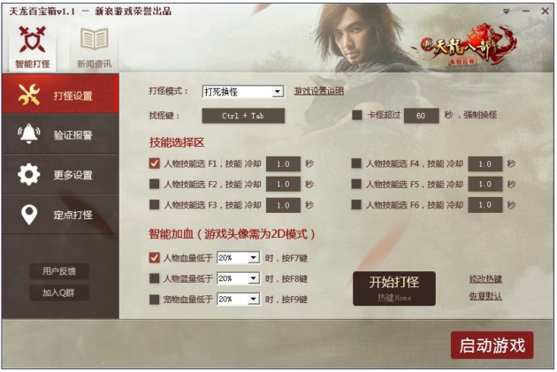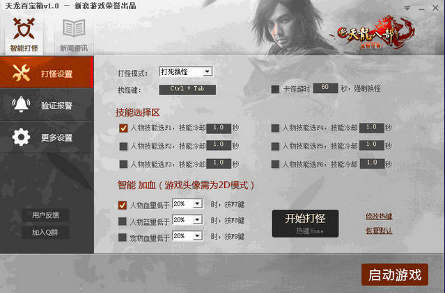 天龙百宝箱拥有的自动技能释放、智能加血、多种打怪模式选择、验证报警、新闻资讯等实用功能,不论是游戏内外,都能让你了解、体验更多好玩的游戏乐趣。