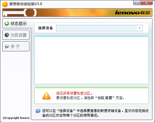 1.“联想移动保险箱V3.0”软件是一款用于联想移动存储产品(移动硬盘、闪存盘),方便用户进行分区操作,并实现私密数据安全访问的软件。