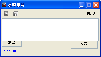 【概括介绍】水印微博是用来自动设置微博图片的一款软件。软件绿色小巧操作简单。目前拥有自动水印、拖放水印、PNG水印、支持截图等等功能。支持新浪微博与腾讯微博使用,欢迎下载!