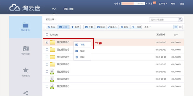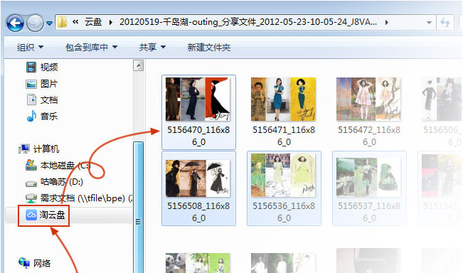 如果您安装了淘云盘客户端,可以直接复制文件到淘云盘专用文件夹,系统会自动将文件同步到云端。