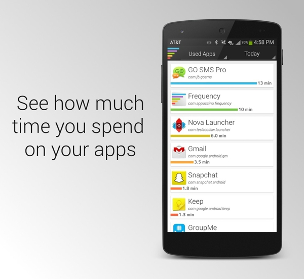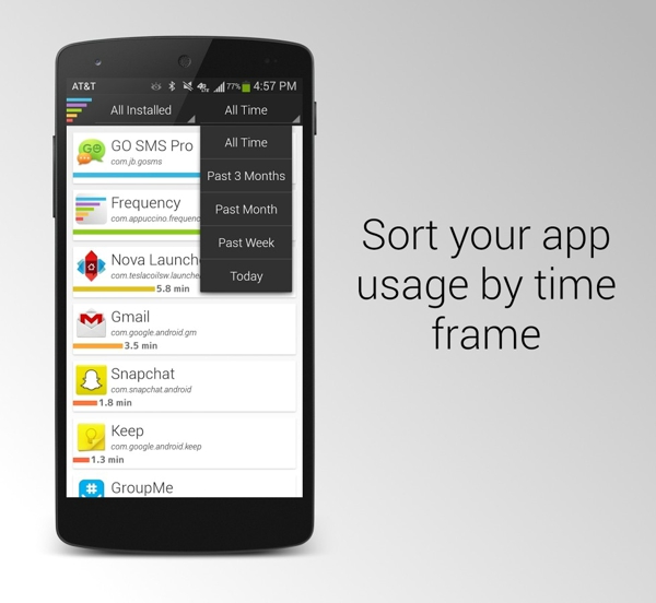 Frequency Pro是全息卡UI设计查看您所使用的时间段内所有的应用程序,或者你已经安装的时间内所有的应用程序显示的时候,你已经用你的应用程序今天的量,上周,上月,最近3个月,或所有时间
