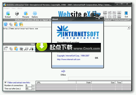 离线浏览工具,能将整个网站下载到硬盘或者将网站中符合您指定条件,如关键字、文件类型、大小等的文件下载到硬盘,并且能将链接转换为相对链接,方便用户将网站保存到光盘介质上。