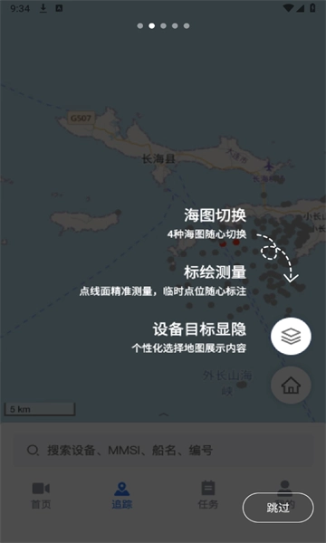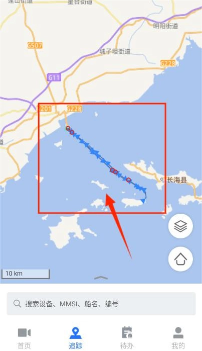 稍等一会儿就能看到船只的航行轨迹,用双指触摸屏幕就能让地图放大或缩小