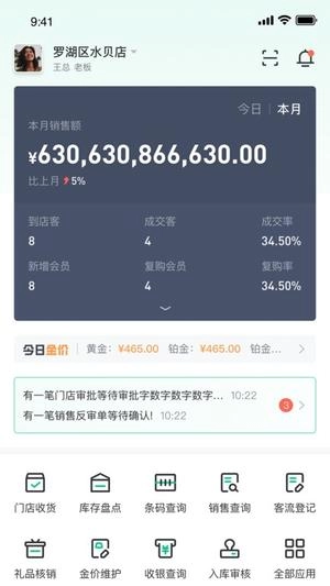 商家能够借助端操作来进行erp等关键信息的查询与审核,店员也可以在线对顾客会员展开跟进维护以及营销转化工作。