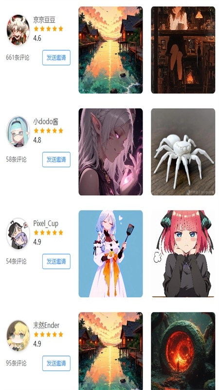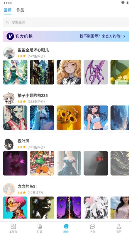 进入“画师”板块,这里汇聚了众多画师的作品,并且可以直接搜索画师。