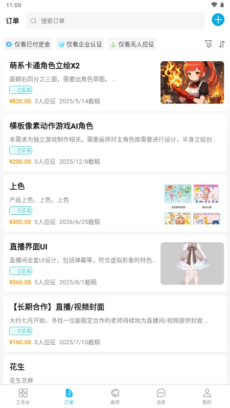 进入主页,就可以发布订单,挑选AI艺术家。