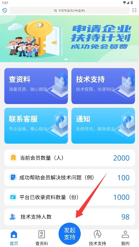 进入应用后,点击底部导航栏的“发起支持”按钮,即可开始创建新的维修服务工单。