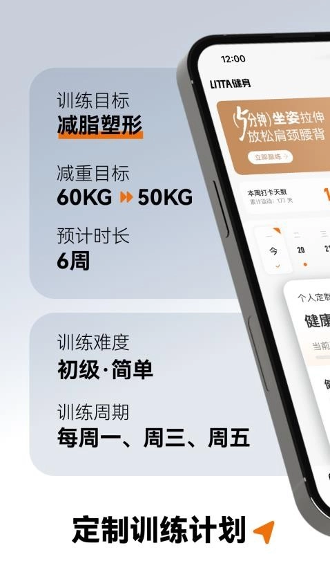 还可自定义训练、减重目标,更好的激励自己健身。