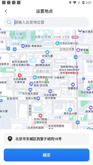 接下来选择你的目的地,可以在搜索栏中查找并确定要前往的目的地,也可以通过拖动地图的方式来选定目的地。