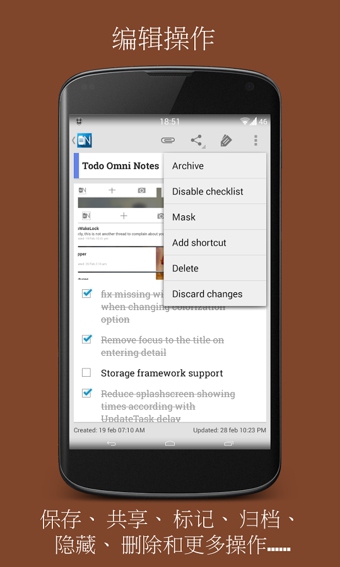 支持KitKat外观添加,编辑,删除记事