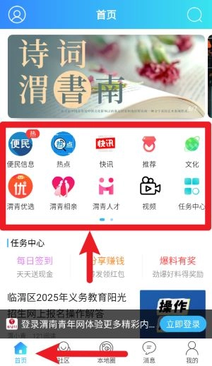 为渭南本地青年提供新闻资讯推送服务,助力用户第一时间知晓重要政策动态。