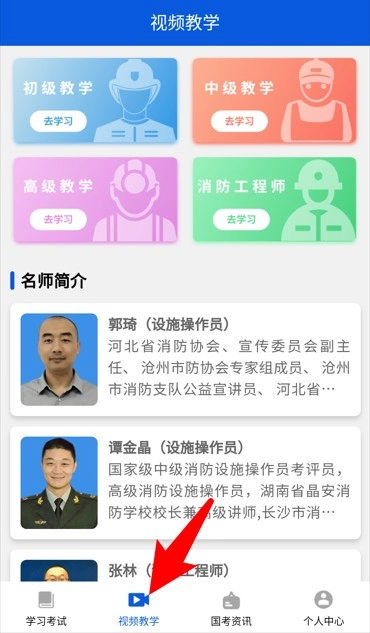 视频教学板块包含从初中到高级的课程,支持根据需求学习,教师信息介绍详尽,适合不同水平的用户进行学习。