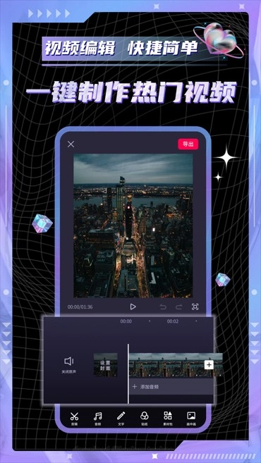 内含丰富素材,文字,涂鸦,滤镜等,一键轻松编辑视频,让您随时随地进行制作大片!