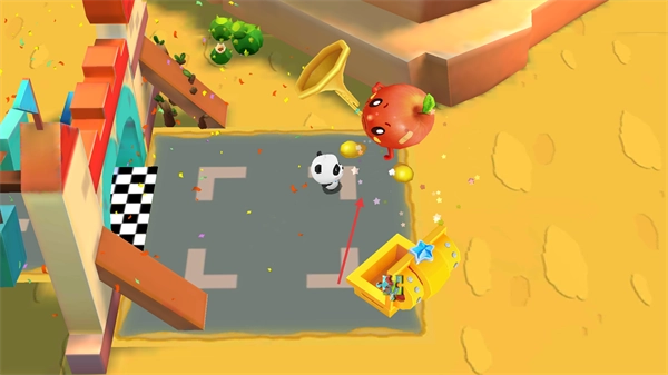 在关卡即将结束之际,要控制熊猫角色抵达黑白格的终点区域,期间还能拾取场景里的苹果类物品,做到这些就能通过当前关卡了。