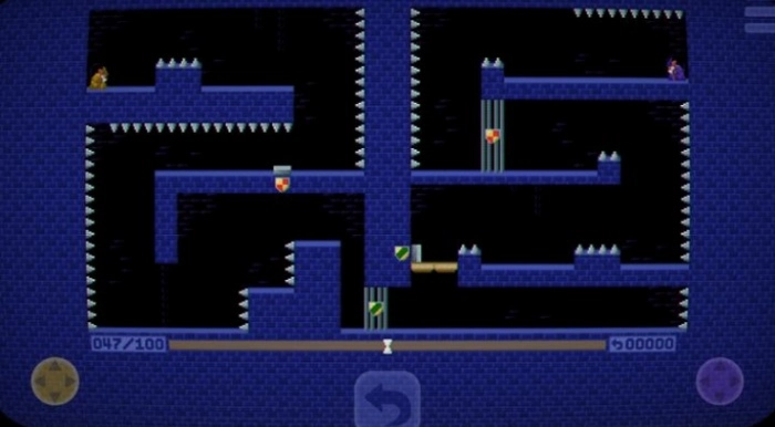 关卡设计方面,这款游戏共设置了100个节奏明快的单屏平台关卡,难度会随着进程逐步提升。每个关卡里都布置了多样的陷阱、敌人以及环境类挑战,玩家需要持续调整应对策略,熟练掌握双手配合的操作技巧,才能够顺利通过关卡。