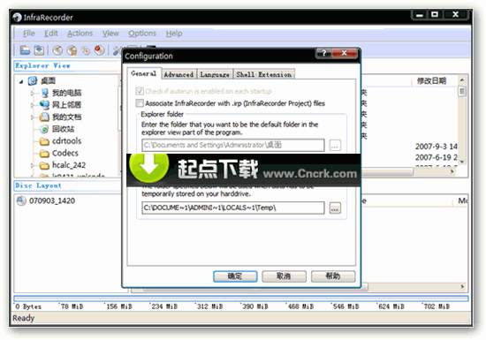 InfraRecorder是一款中规中矩的CD/DVD刻录软件,支持光盘刻录与ISO镜像制作,支持ISO,Bin/CUE镜像文件刻录,可将音乐CD抓轨为WAV等音乐文件,光盘对刻录支持飞盘,支持多轨道刻录,可进行封盘,支持双层DVD,可选择超刻,可刻录DVD-Video光盘……而且所有这些功能的前提在于:它是免费的。如果你对Nero等刻录软件的日渐庞大已有所厌倦,那么这款免费的刻录软件应当可担负起新的职责了,软件使用界面为上下两部分的资源管理器形式,简单拖拽即可完成刻录准备,同时它还提供了一个Express程序,可让你以向导方式开始刻盘。