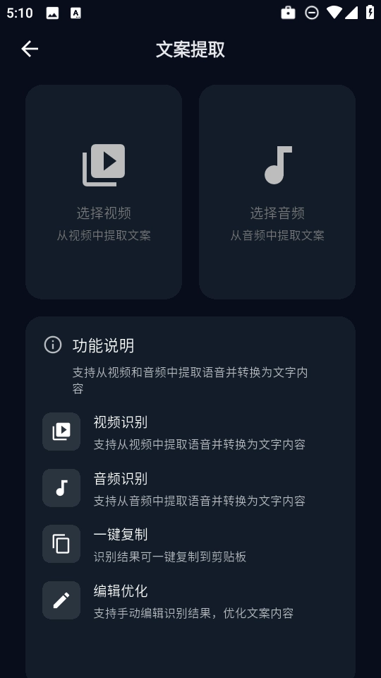 接着在首页找到【文案提取】。