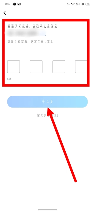 请输入你收到的短信验证码,然后点击“下一步”按钮,这样就能完成账号的登录流程了。
