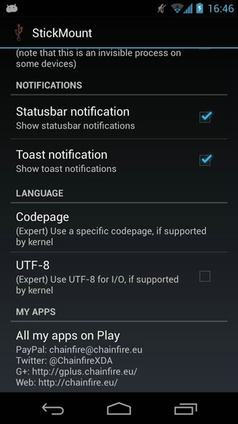 - (专业版)终止阻止卸载的应用:有时一些应用会使用位于USB设备中的文件,从而导致无法卸载USB设备,专业版提供了一个尝试终止所有可能阻止卸载成功的应用的选项- (专业版)媒体扫描:专业版支持每次挂载/卸载时触发媒体扫描,这样将会自动让文件像图库和音乐那样在您的USB设备上即时可用