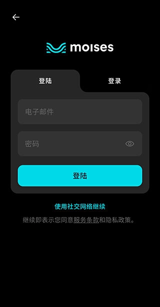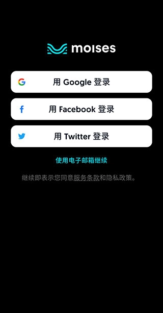 打开软件后,我们首先点击界面下方显示为蓝色字体的【使用电子邮箱继续】选项。