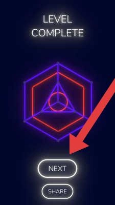 3、“LEVEL-COMPLETE”后,点击【NEXT】按钮,即可进入下一关,继续进行几何轨道上的光点移动挑战,从而解锁新的关卡。