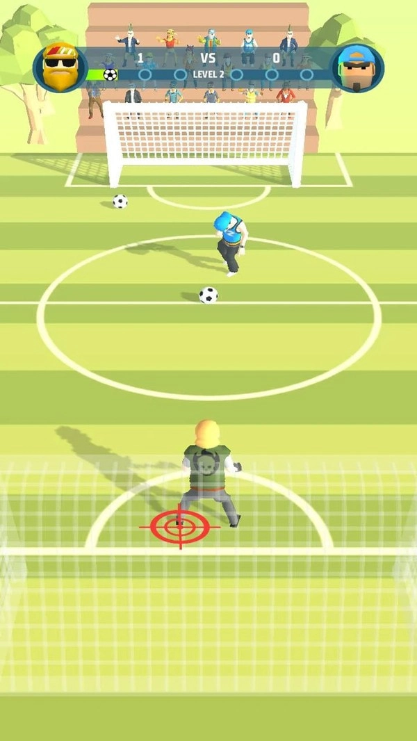 《趣味射门》是一款有意思的射门类游戏,要是你对足球相关的游戏感兴趣,或者正愁找不到能用来消遣时间的游戏,那么这款趣味射门绝对能符合你的期待。它的玩法十分简易,仅需把球踢进球门就行,不过球门前方总会有一名守门员对你进行阻拦。