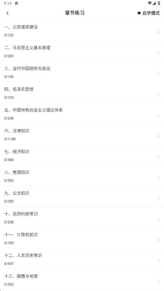 点击刷题入口进入查看,这里展示了章节分类,方便快速做出答题选择。