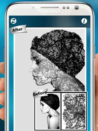 Image Blender Instafusion溶图软件是一件创意如片制作手机软件。这款溶图软件操作起来很简单,就是将两张图片相互融合起来,形成一张赞新的图片,当然不是任何两张融合起来都好看的,这需要艺术细胞。