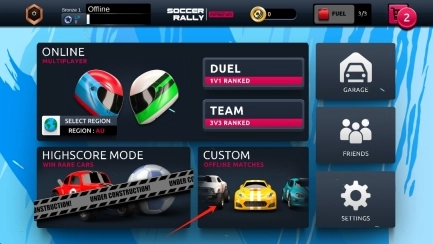 1、在Soccer-Rally-Arena游戏里,进入模式选择界面后,挑选合适的游戏模式,就能开启汽车足球的竞技对决了。