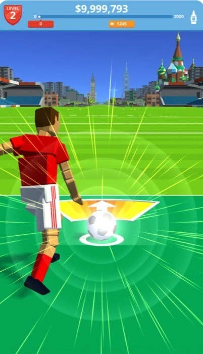 踢得越远,赚的硬币就越多,尽可能用力踢足球。