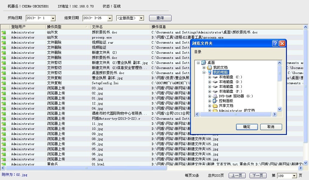 3. 日志审计 所有通过申请解密的记录,留有解密文件备份在服务器。可以记录文件操作日志,打印日志,并可以自定义查询日志,可以做相应的导出。