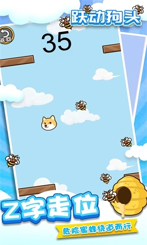 这是一款以可爱狗头为主角的趣味闯关游戏,拥有层出不穷的关卡设计和丰富任务,能充分锻炼你的操作技巧。游戏中你可以通过灵活操控角色向上跳跃,巧妙避开蜜蜂等障碍,在层层平台间向上推进,以最快速度抵达终点并赢取丰厚奖励。