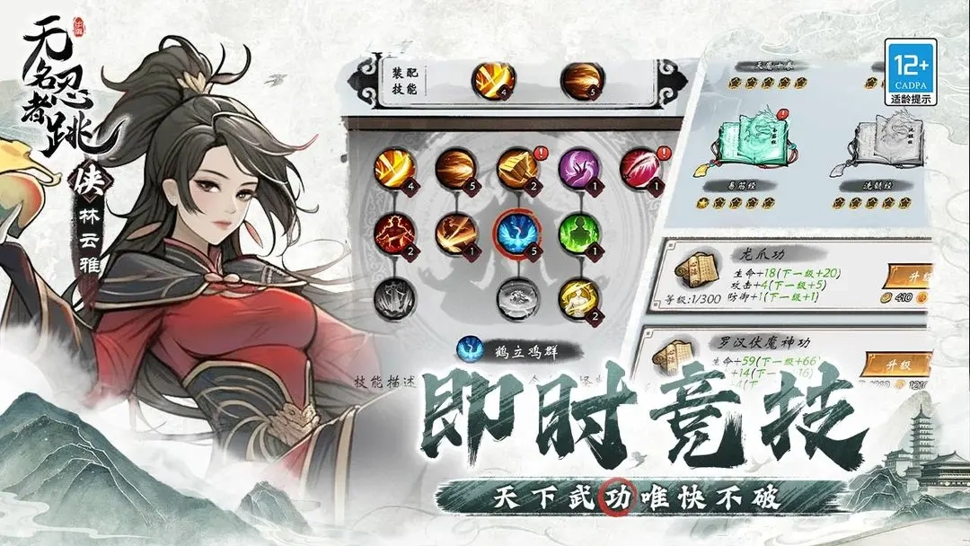 总体来说,《无名忍者跳》是一款集趣味性与挑战性于一体的武侠放置类格斗游戏。它用轻松随性的风格展现武侠江湖世界,多样的玩法设计和战斗机制让游戏更具策略深度。对于热衷于武侠文化、日常时间较为零散的玩家而言,这款游戏绝对是不容错过的优质作品。
