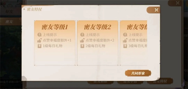 和密友互动的过程中,密友等级也会跟着提升呢。不同等级的密友能拥有专属特权,主要的特权类型包括以下几种: