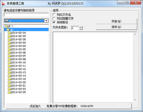 1、本软件绿色免费、无需安装2、运行主界面,选定要列举的目录