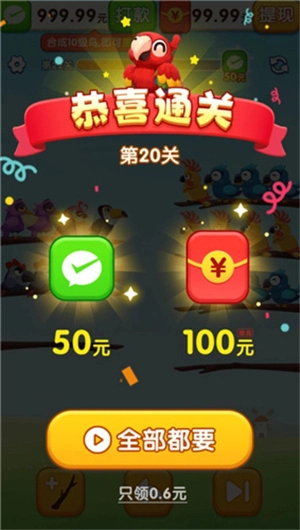 游戏的操作向来简单,核心玩法是让不同等级的小鸟进行合成,合成的数量越多,最终获得的奖励也就越丰厚,而且这些奖励都能轻松领取。