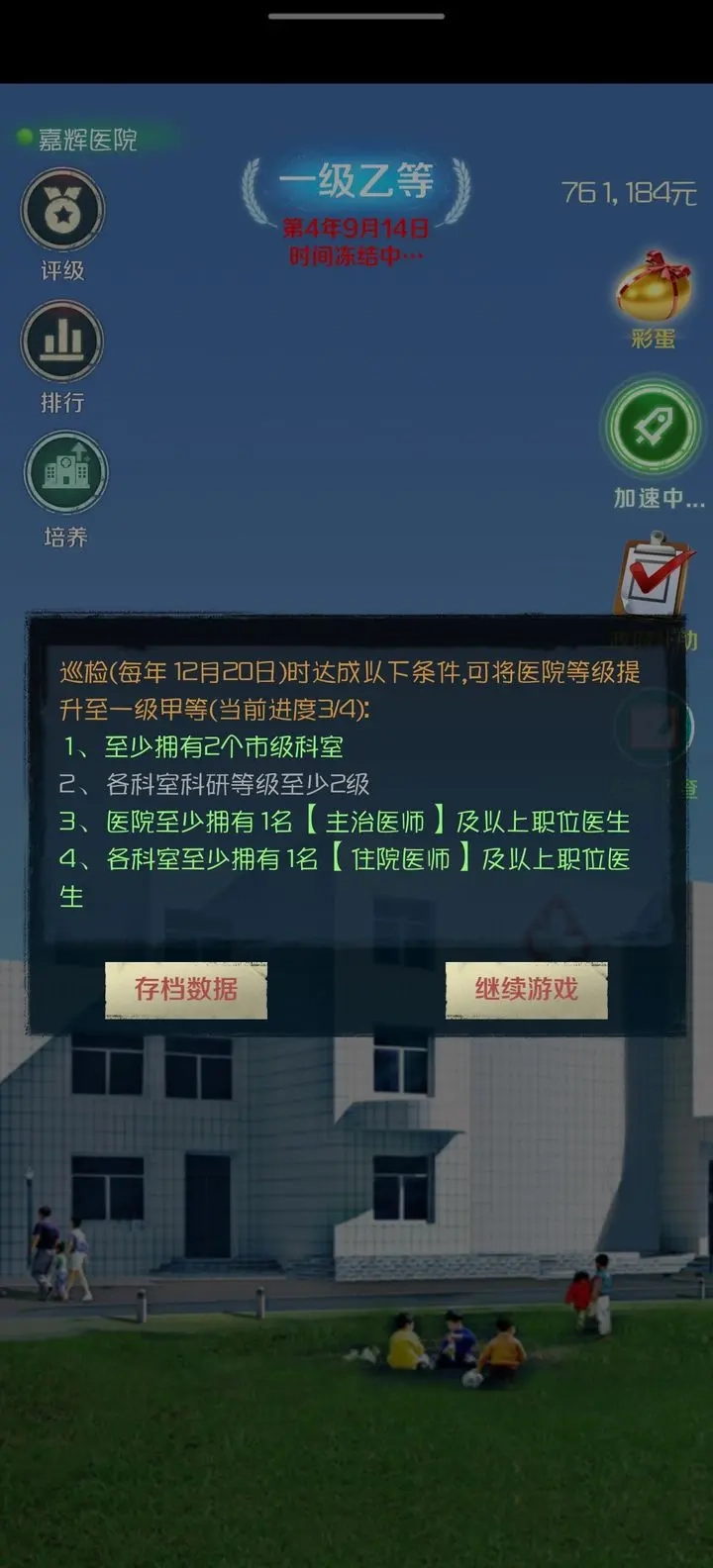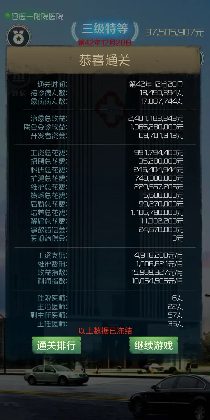 合理经营你的医院,将其提升到三级特等就能通关了。