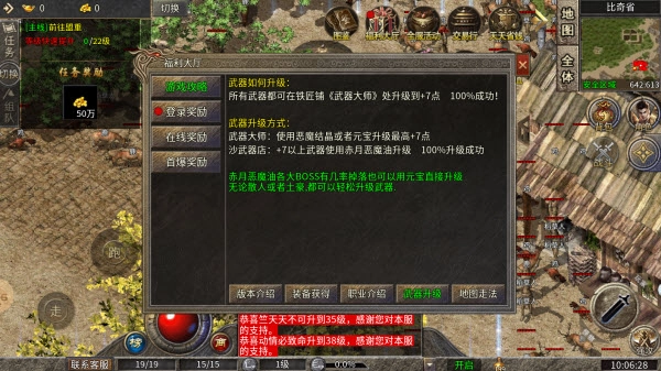沙巴克武器店:+7及以上的武器可使用赤月恶魔油进行升级,升级成功率为100%