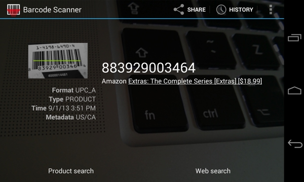 同时安卓条码扫描器内置多线程加速下载器,无论是下载APK应用还是其他文件,都能体验高速快感条码扫描器可以扫描 CD,书籍和其他产品,然后查找价格和评论,或在看好索一本书,发现在那里发生。你还可以扫描 QR 码包含的网址,联系信息,日历事件等等。 Barcode Scanner 条码扫描工具就像其名字那样说的,可以扫描各种出版物的一维码和二维码,通过该工具可以直接读取条码中存储的信息,或是数字、或是网址。【的功能】