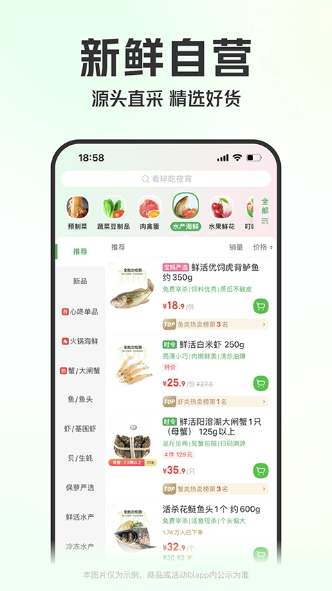 零配送费,零门槛配送:哪怕只是一根葱,也能为您送达。自主采购鲜食,新鲜品质有保障:从原料到销售,严格遵循7道工序、6个标准,层层严格把控,坚决杜绝劣质食品流向消费者。